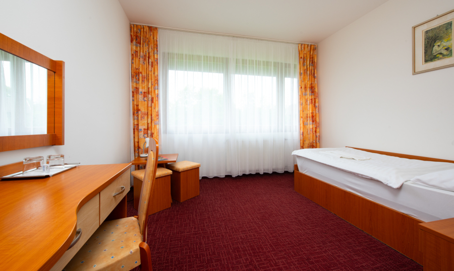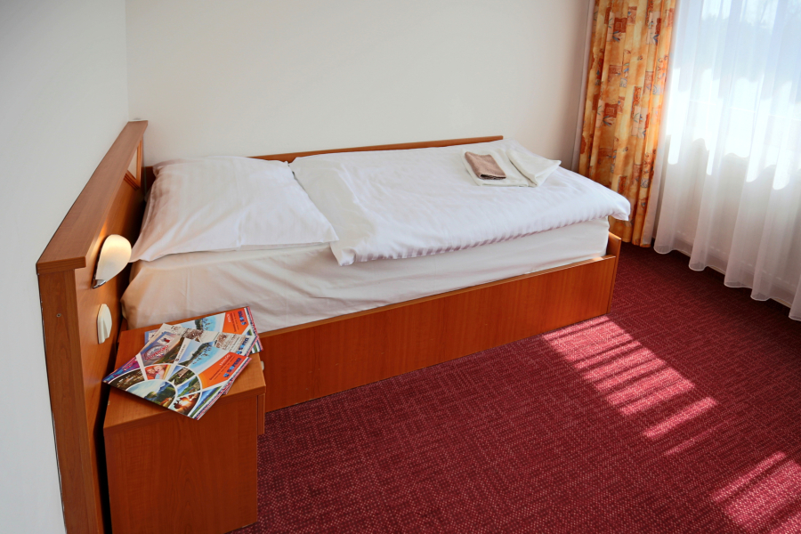 Komfortné jednoposteľové izby určené pre jednu osobu s možnosťou jednej prístelky. Niektoré jednolôžkové izby majú kúpeľňu prispôsobenú pre starších klientov. Detská postieľka na vyžiadanie.
